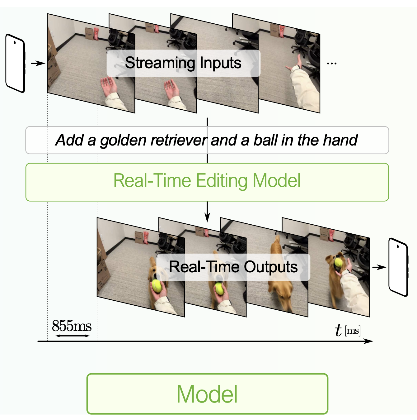 We study instruction-guided editing of egocentric videos for interactive AR applications. While recent AI video editors perform well on third-person footage, egocentric views present unique challenges - including rapid egomotion and frequent hand-object interactions - that create a significant domain gap. Moreover, existing offline editing pipelines suffer from high latency, limiting real-time interaction. To address these issues, we present a complete ecosystem for egocentric video editing. ...
